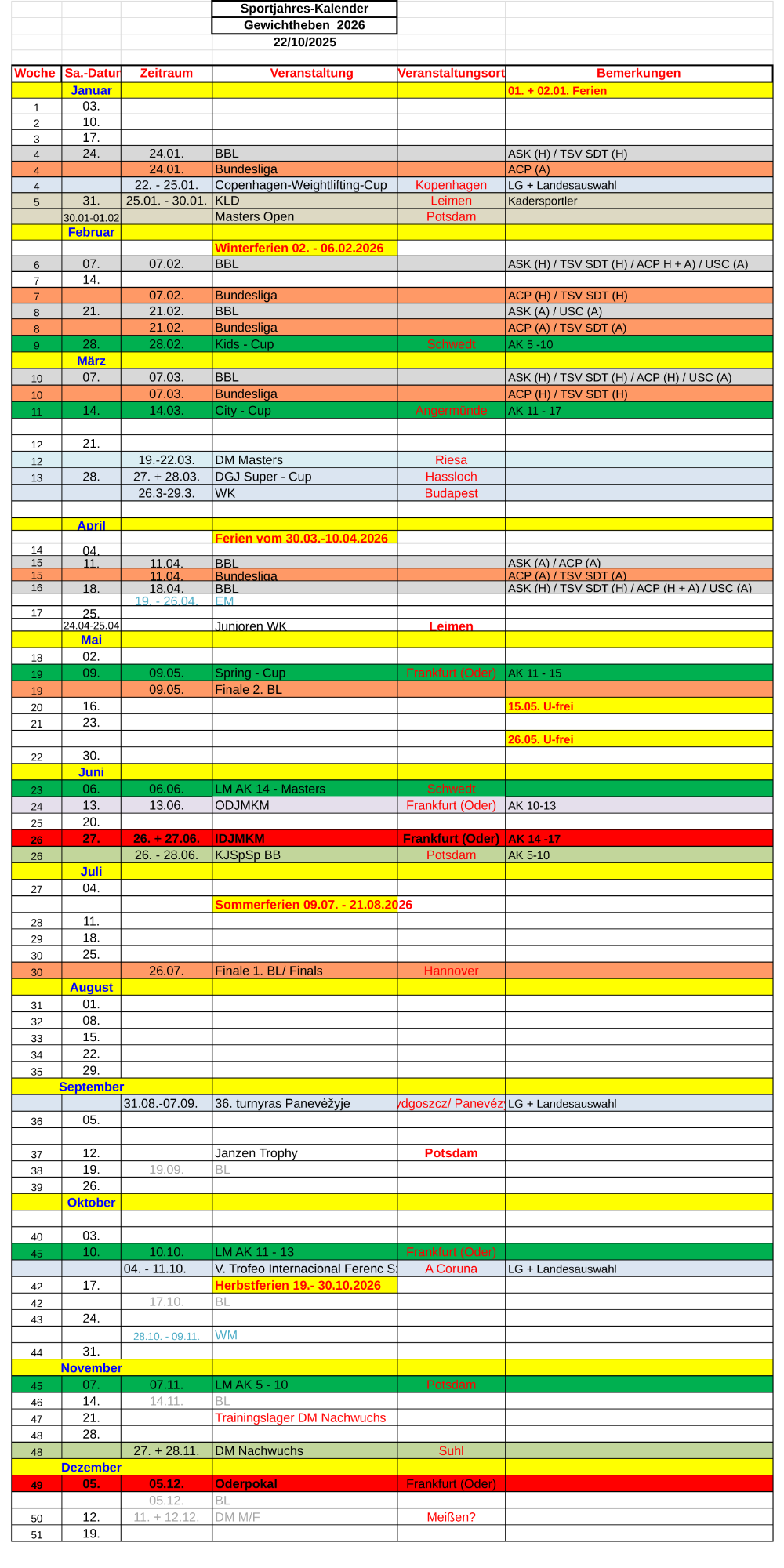 Termine | Wettkampfkalender